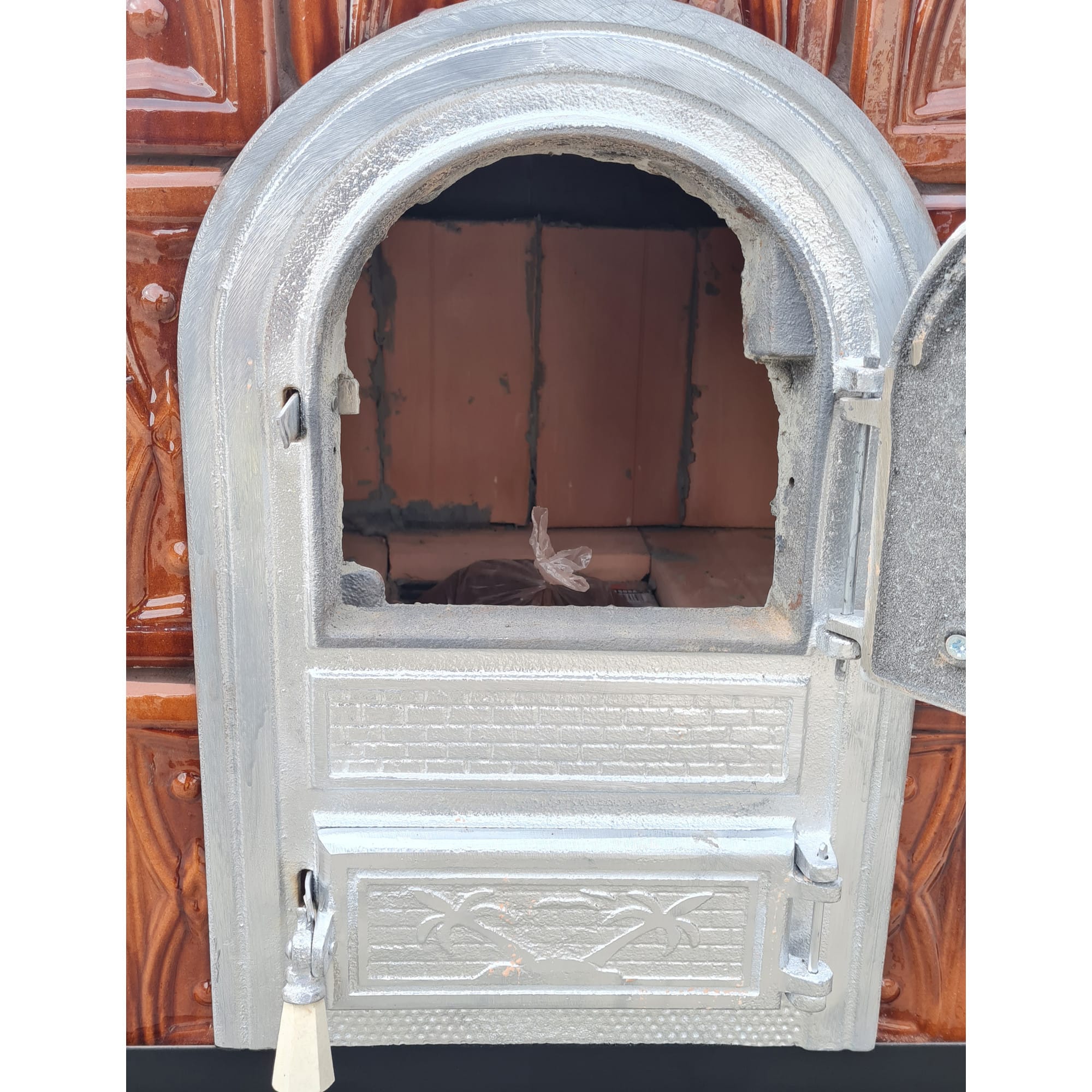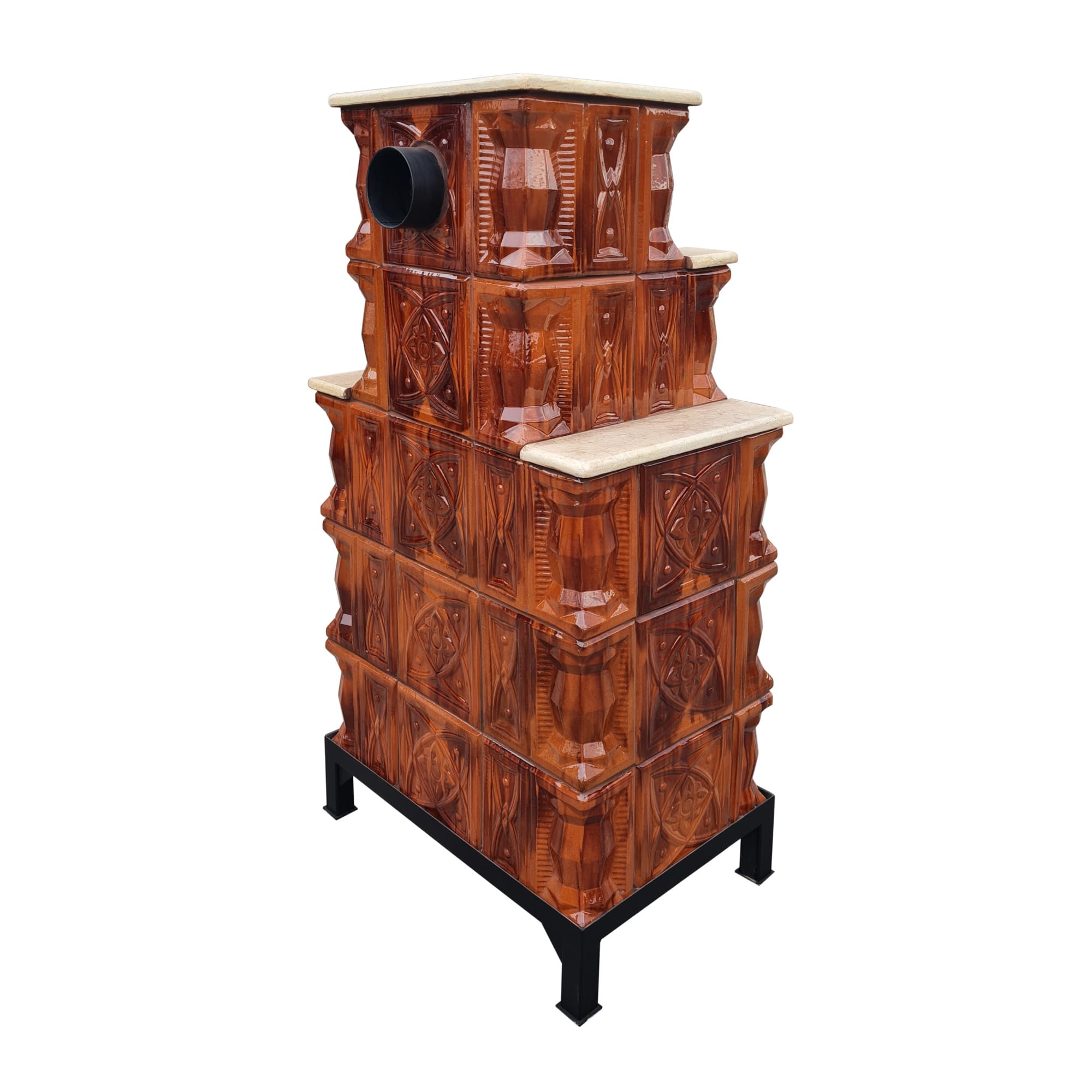 Semineu teracota, 5 randuri, portita semirotunda, polita dubla granit finisat, diamant savana, 140 cm x 67 cm x 46 cm
