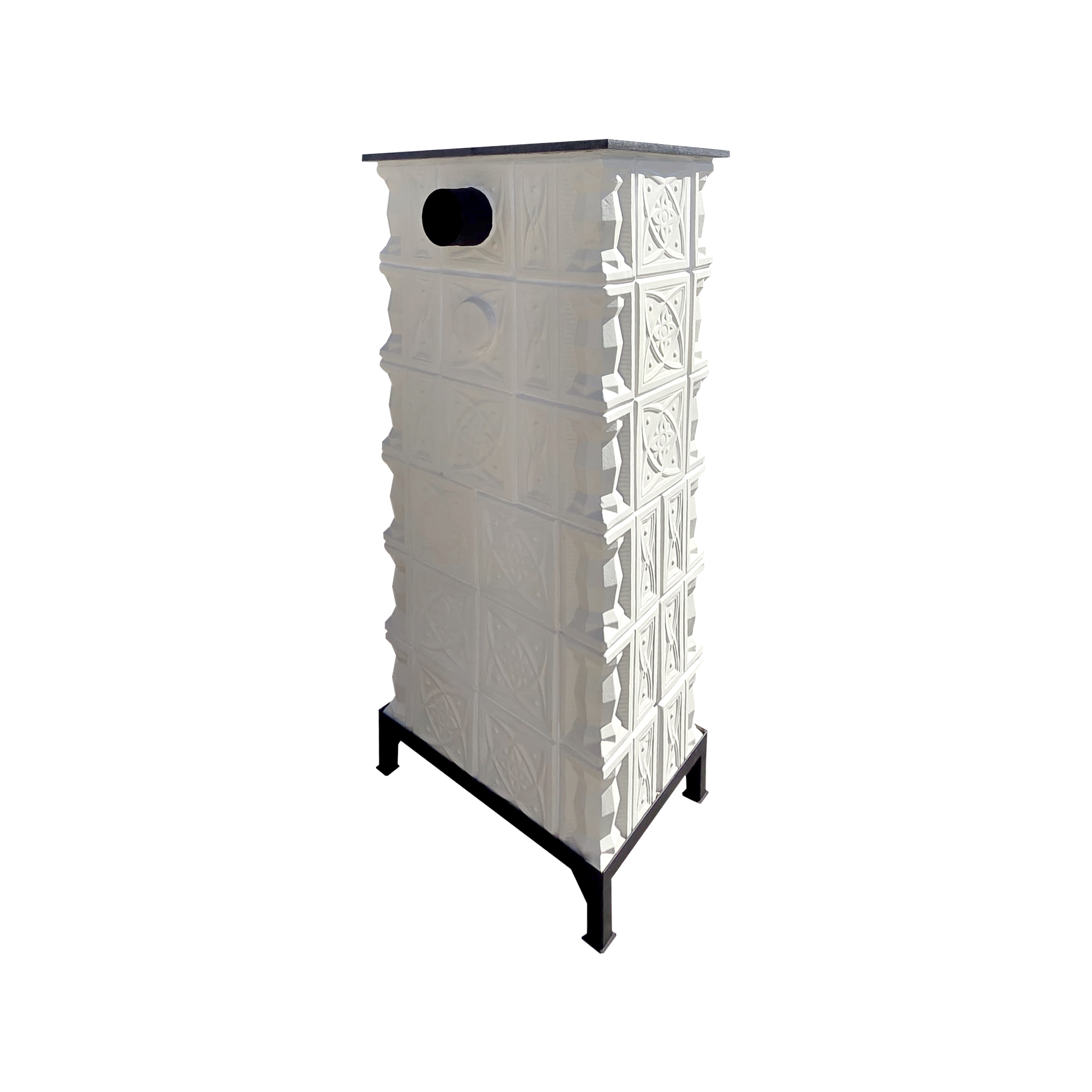 Semineu teracota 6 randuri diamant alb cu cuptor, usa sticla mare, evacuare la spate, 160 cm x 67 cm x 46 cm