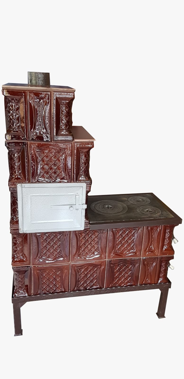 Soba teracota mobila, 5 randuri, plita mare, alimentare pe lung, cuptor stanga, maro, 140 cm x 113 cm x 57 cm