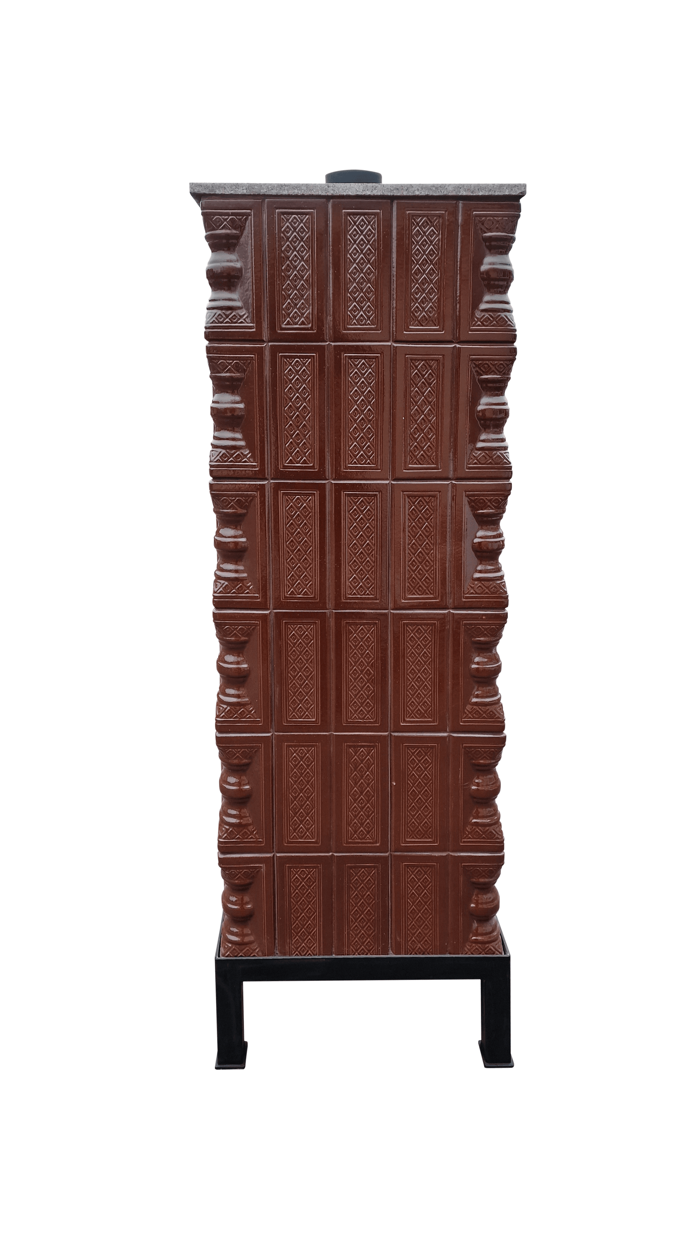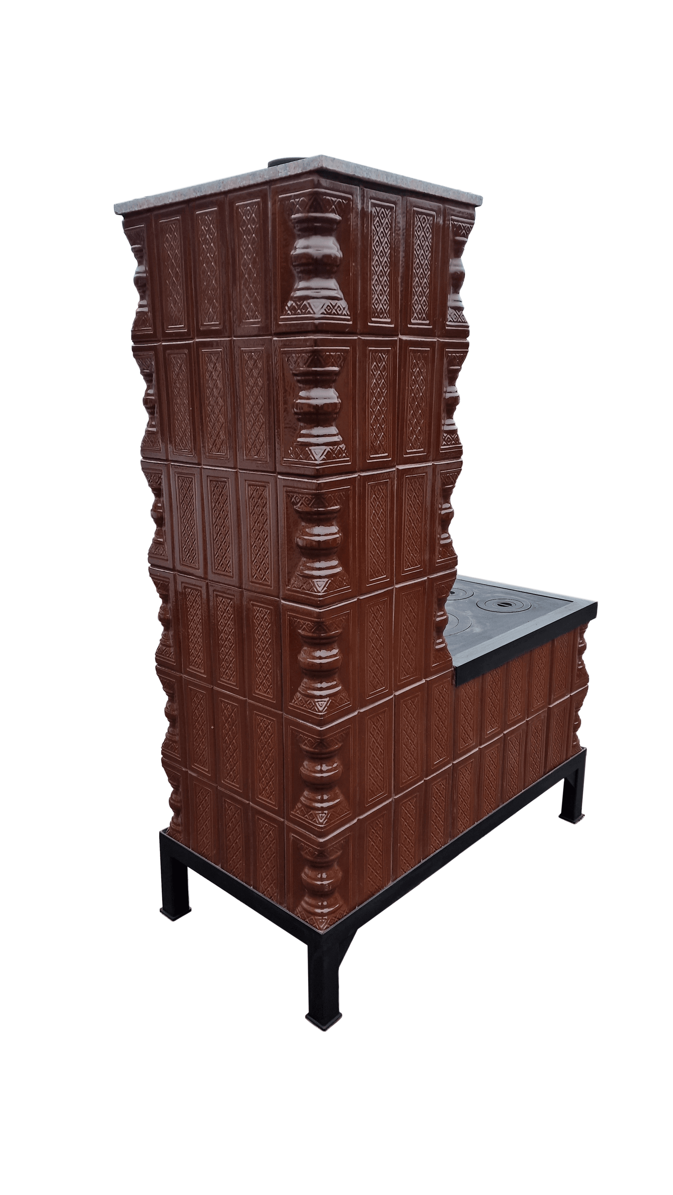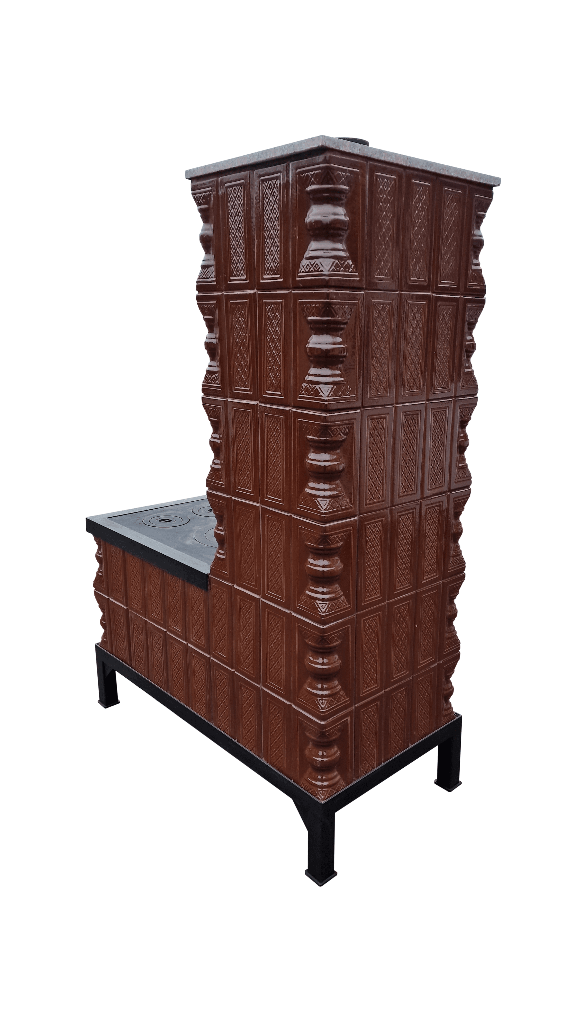 Soba teracota mobila, 6 randuri, plita mare, alimentare pe lung, evacuare lateral dreapta, maro, 165 cm x 113 cm x 57 cm